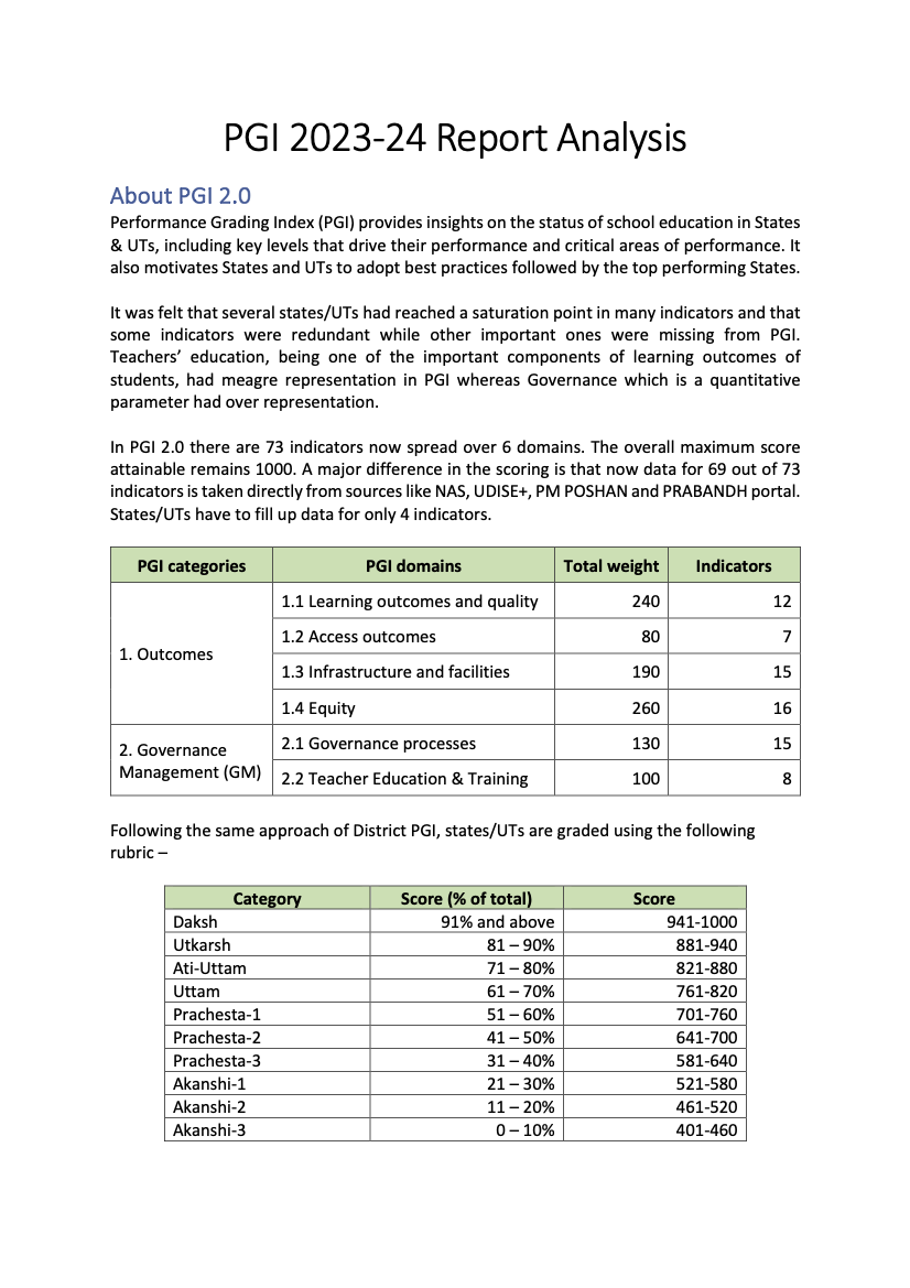 As a consultant, you analyse the report (NAS, UDISE+, PGI) and write a note for the decision-maker outlining areas that require their attention.